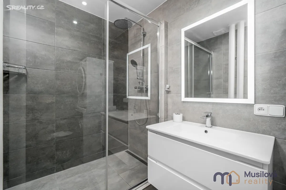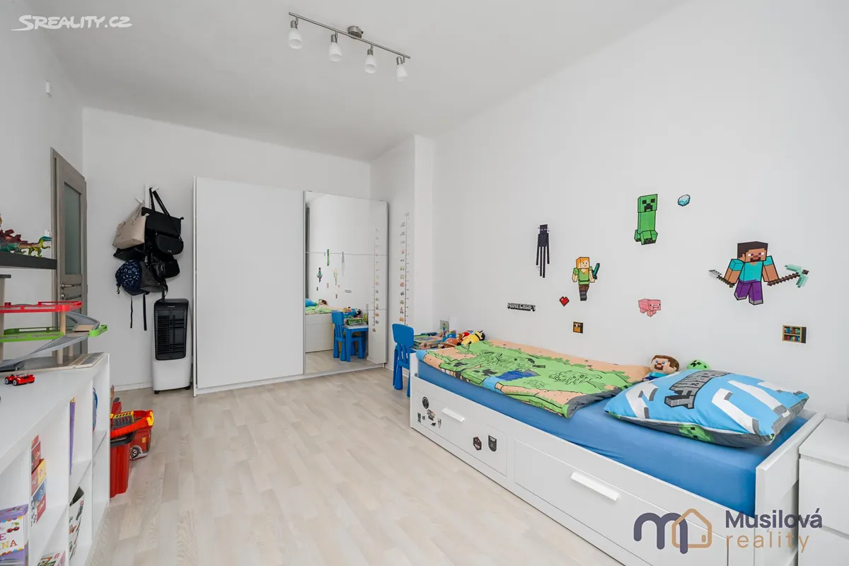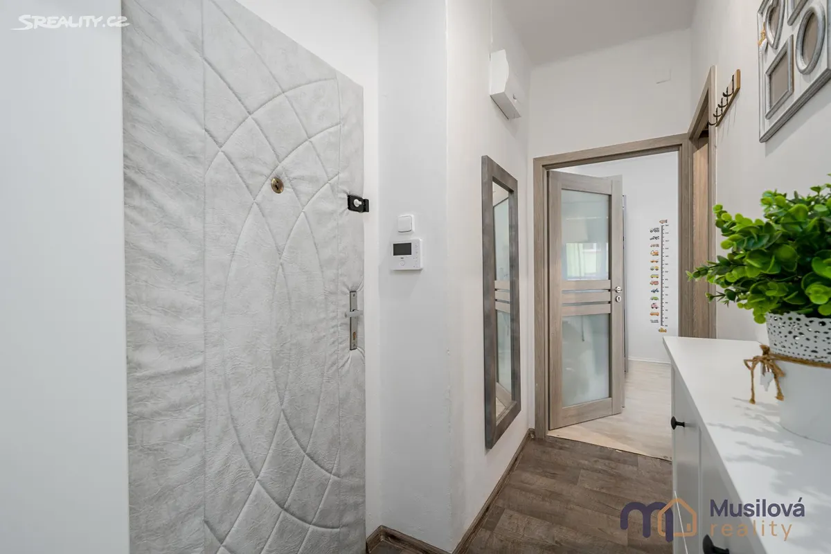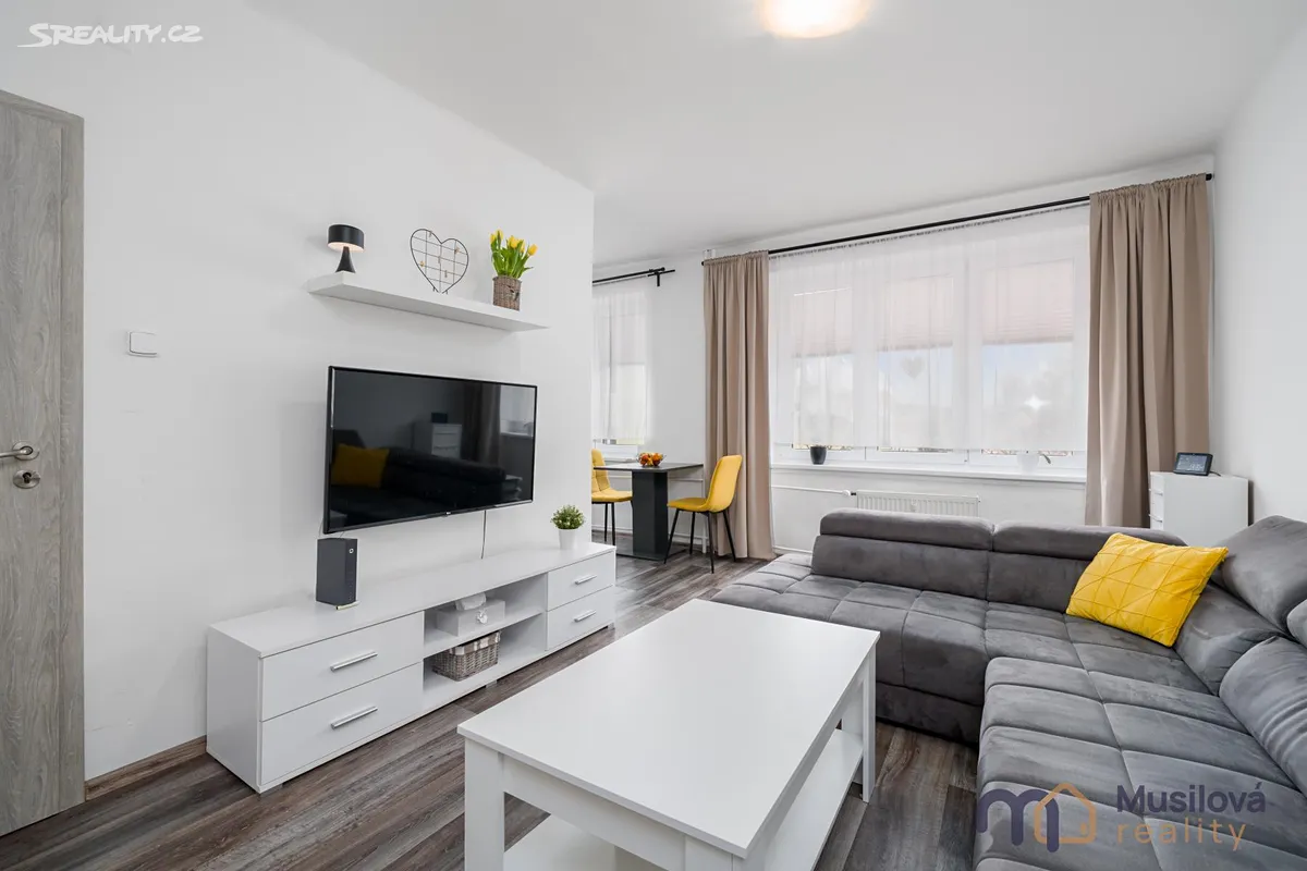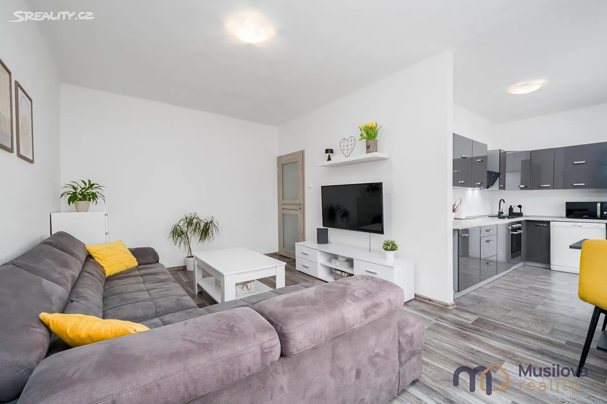 Bytová jednotka disponuje předsíní, prostornou koupelnou se sprchovým koutem, samostatnou toaletou, obývacím pokojem, kuchyní s vestavnými spotřebiči a samostatným pokojem. K bytu náleží také prostorná sklepní kóje a balkon.