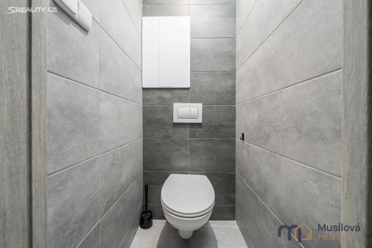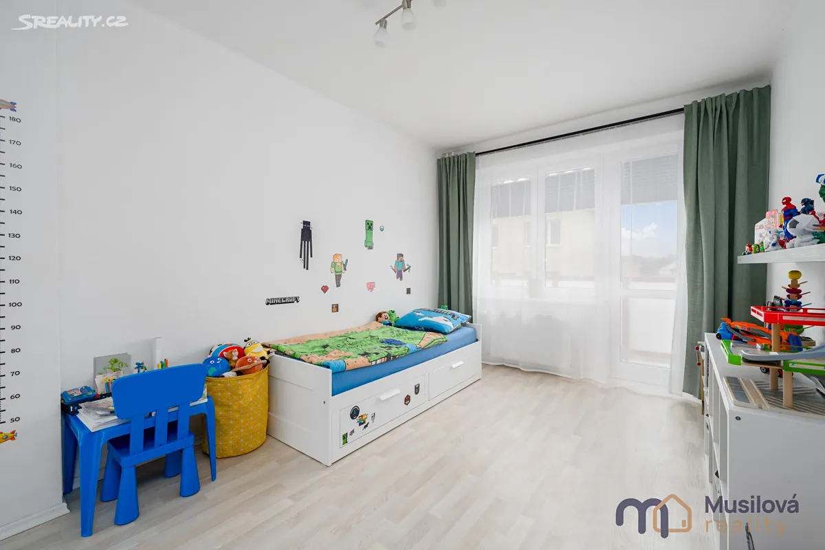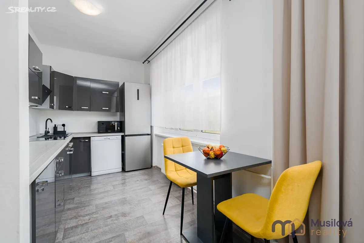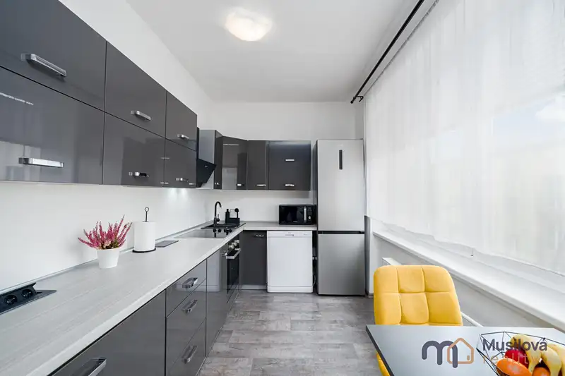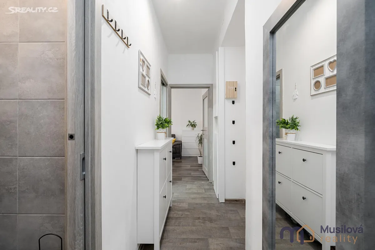 Bytová jednotka disponuje předsíní, prostornou koupelnou se sprchovým koutem, samostatnou toaletou, obývacím pokojem, kuchyní s vestavnými spotřebiči a samostatným pokojem. K bytu náleží také prostorná sklepní kóje a balkon.