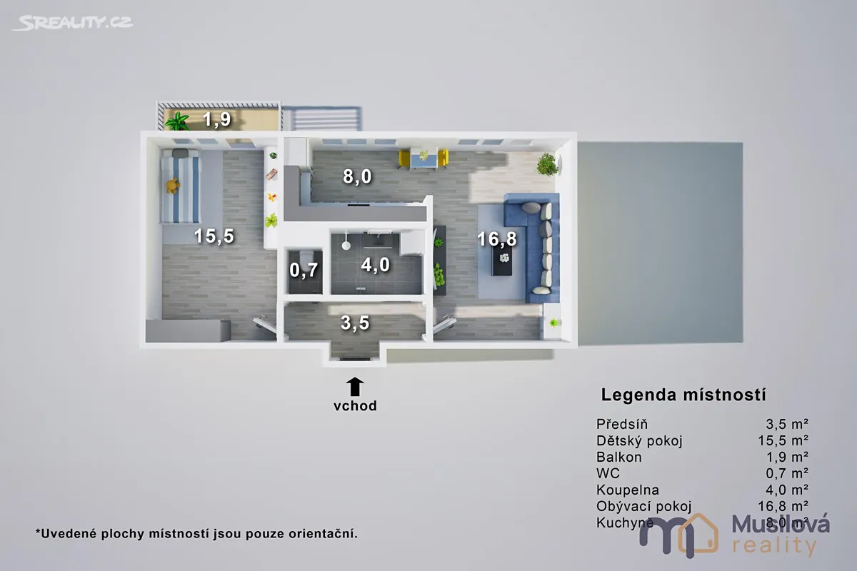 Celková výměra: 56 m²