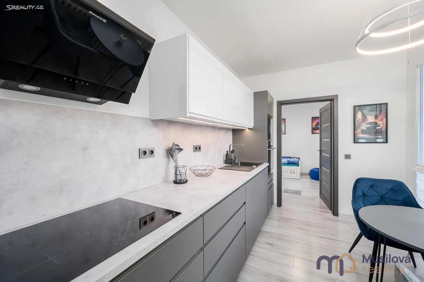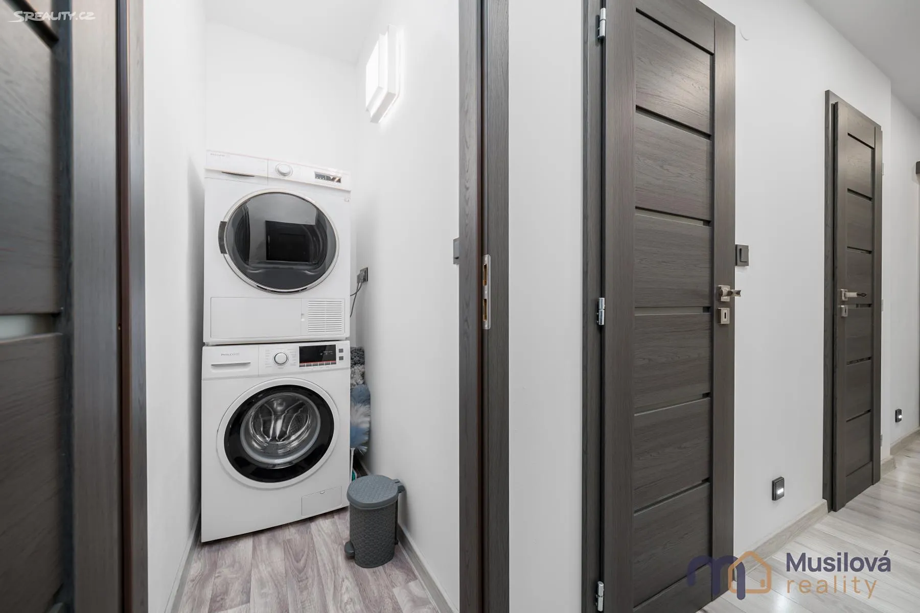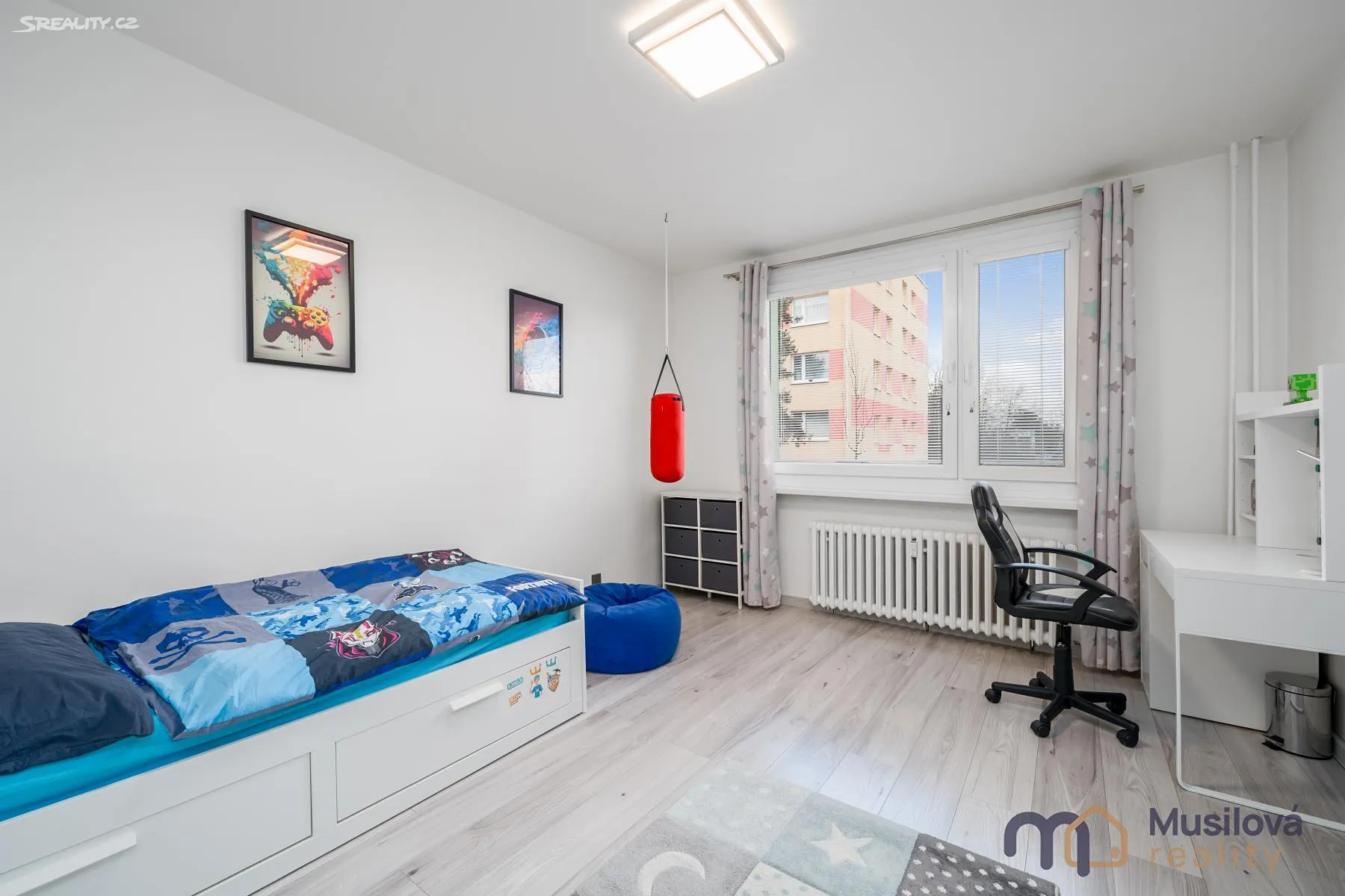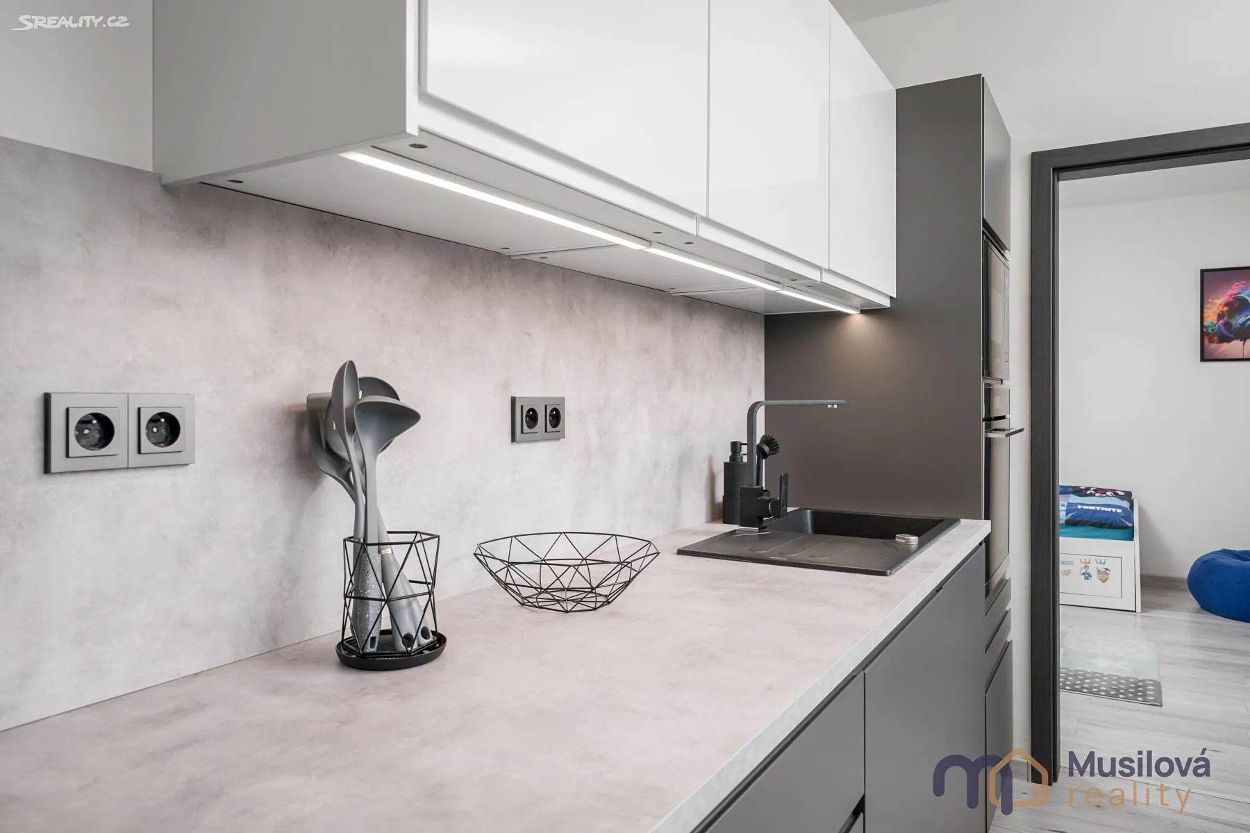 Bytová jednotka disponuje prostornou předsíní, praktickou komorou s místem pro pračku a sušičku, koupelnou s vanou, samostatným WC, obývacím pokojem, kuchyní s vestavnými spotřebiči, ložnicí a dětským pokojem. K bytu náleží prostorná sklepní kóje a lodžie.