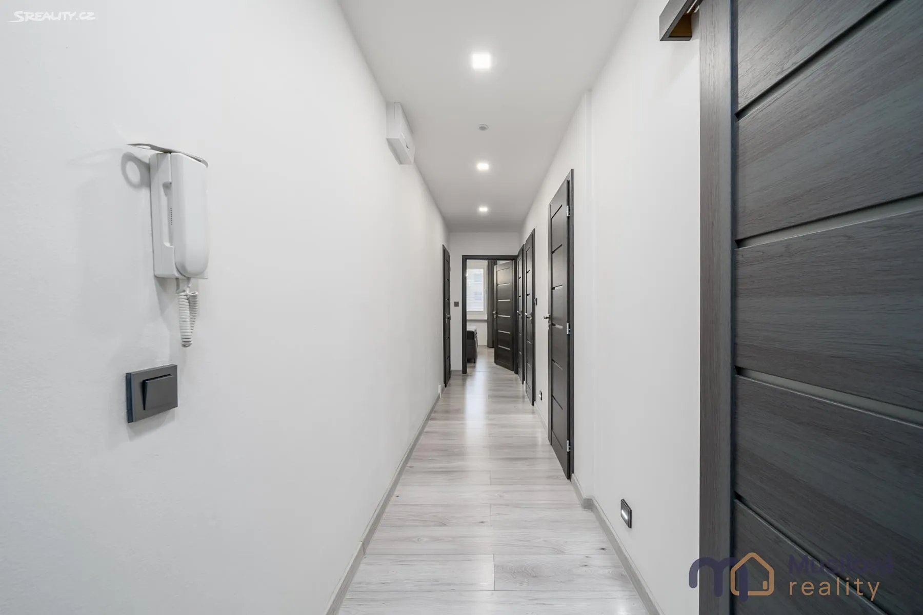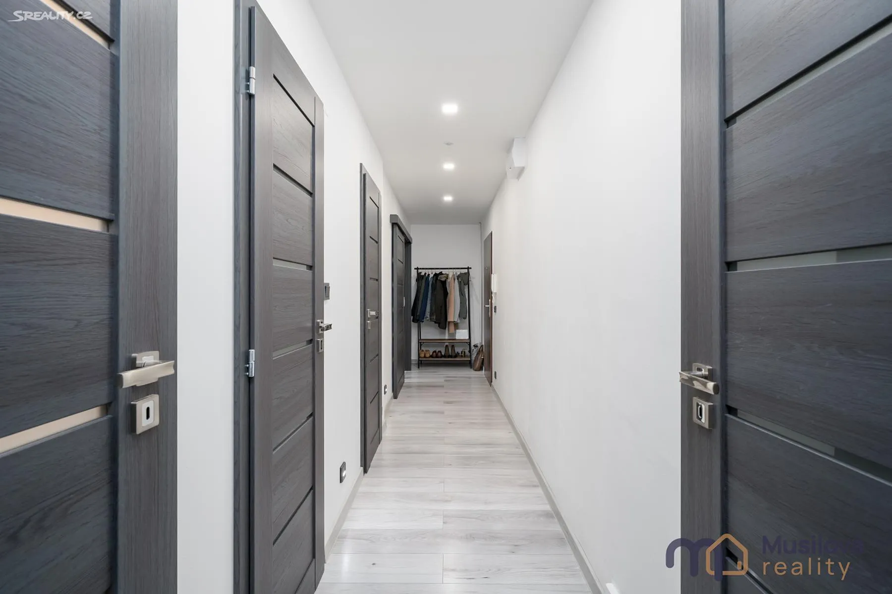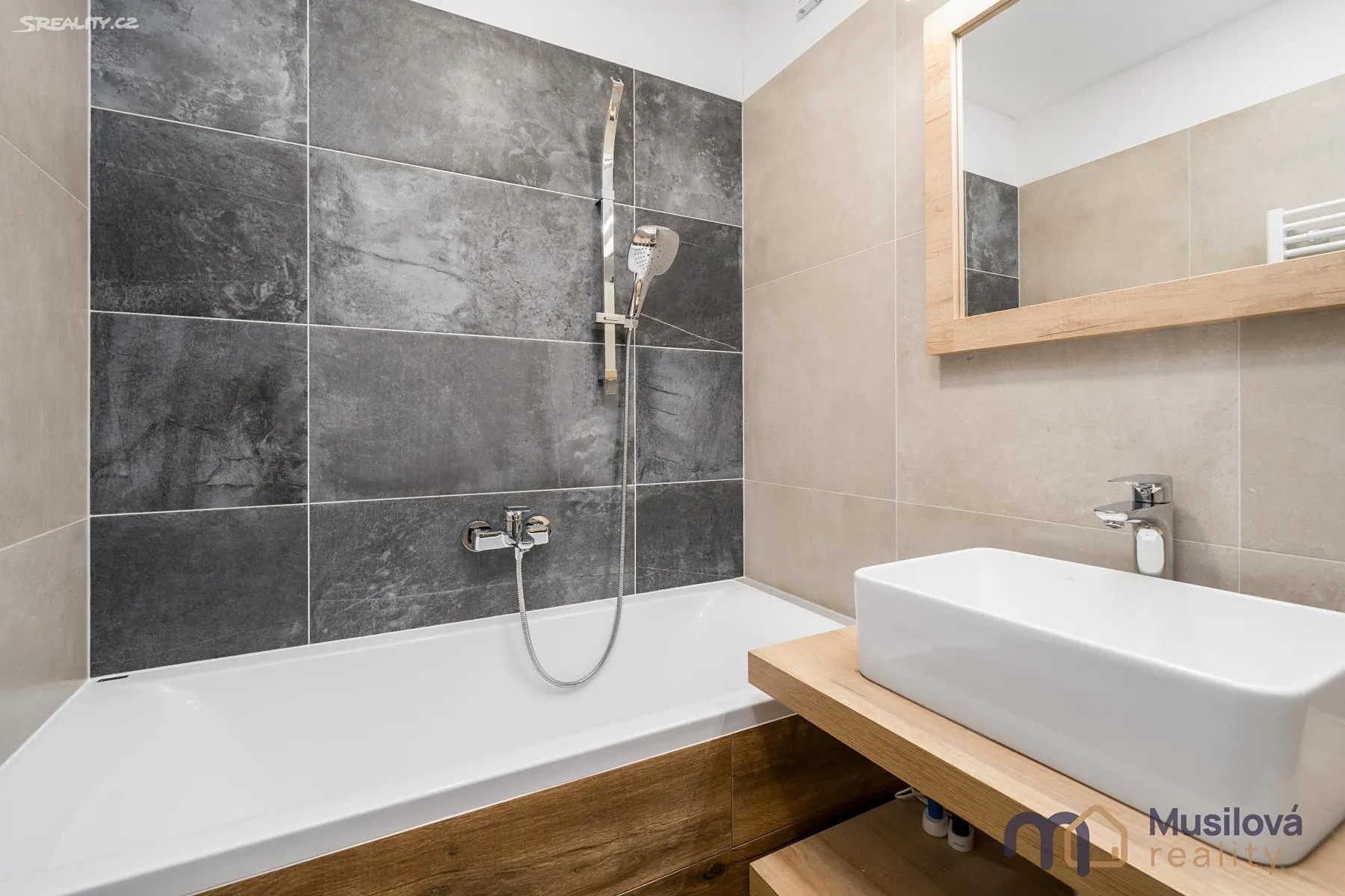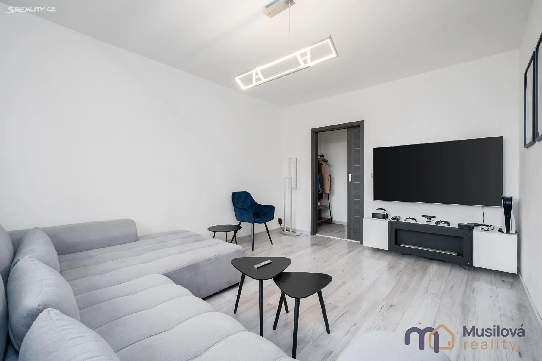 Bytová jednotka disponuje prostornou předsíní, praktickou komorou s místem pro pračku a sušičku, koupelnou s vanou, samostatným WC, obývacím pokojem, kuchyní s vestavnými spotřebiči, ložnicí a dětským pokojem. K bytu náleží prostorná sklepní kóje a lodžie.